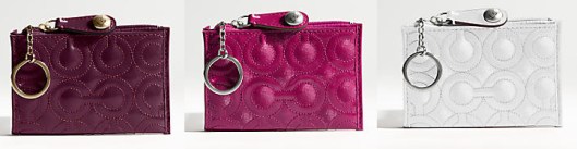 I remembered that one of my good friends had a Coach pouch during college, so I started off there. And came across these darling gramercy patent mini skinny wallets. I love the vibrant colors (especially the purple!), the patent material (easy cleaning) and the little compartment on the side for cards. I’ve even brought my clutch to the Coach store just to make sure it fits into it. At $42, it is a palatable price for me. The prints are not my favourite, but it’s subtle enough that I can live with it. So in short, it’s quite perfect for my needs (except for the fact that all the Chicago stores seems to have ran out of purple)!