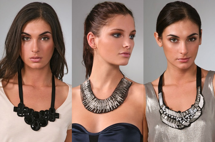 I’m loving these three from Shopbop. And look, the pictures above even show you three additional ways of wearing a bib necklace: a) with a simple wide neck tee for a casual look b) strapless dress for an evening look and c) with a simply designed flashy top for going out!