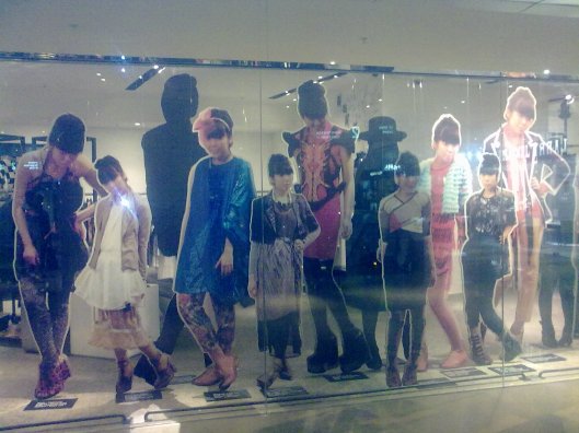 I was walking along Pacific Place and was star struck again by Susie Bubble– except this time by cardboard versions of her outside the Joyce Boutique!